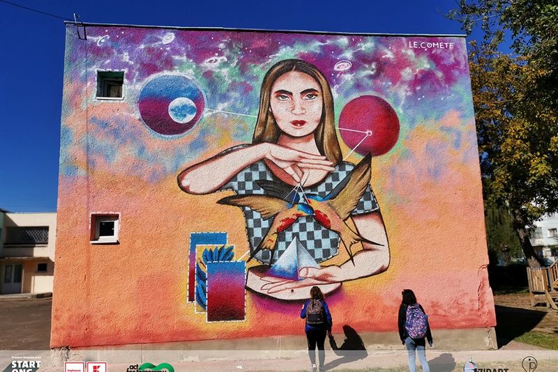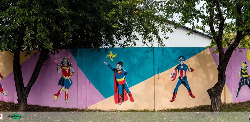 GALERIE FOTO:„Frumoșii nebuni” care au schimbat culoarea unui oraș cenușiu. În mai puțin de o lună, artiștii au însuflețit clădiri fără personalitate din Bacău