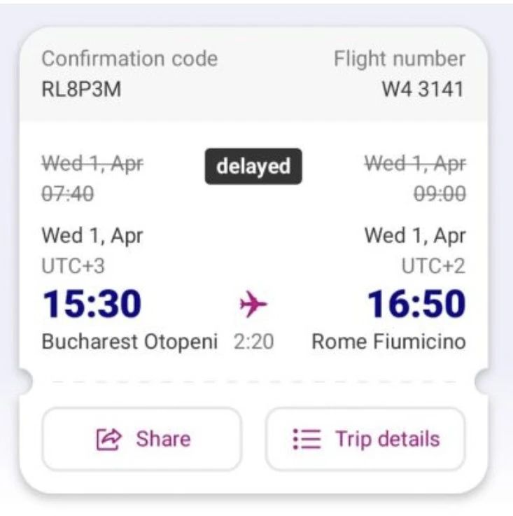 Cursa București–Roma, care a decolat la ora 07:40, a revenit pe pistă după câteva minute de zbor, în condițiile în care pilotul a decis că sunt necesare verificări suplimentare, ca urmare a faptului că în avion s-a simțit miros de ars, potrivit sursei citate.