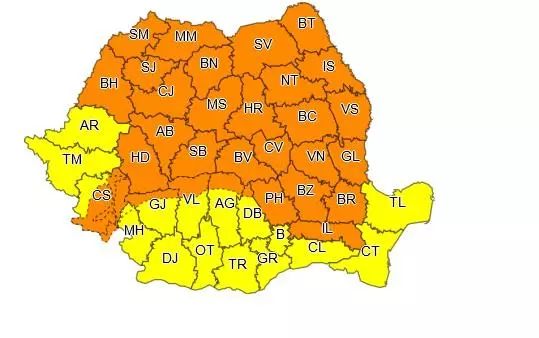 ANM a emis sâmbătă, atenționări meteo COD GALBEN și COD PORTOCALIU de vreme extremă