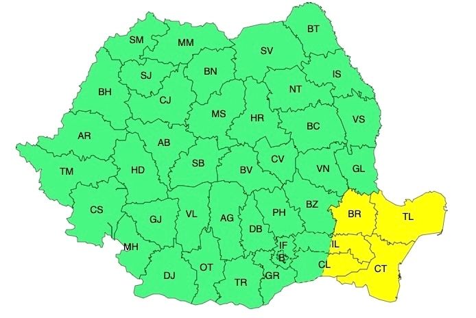 ANM: COD GALBEN DE FENOMENE METEO PERICULOASE