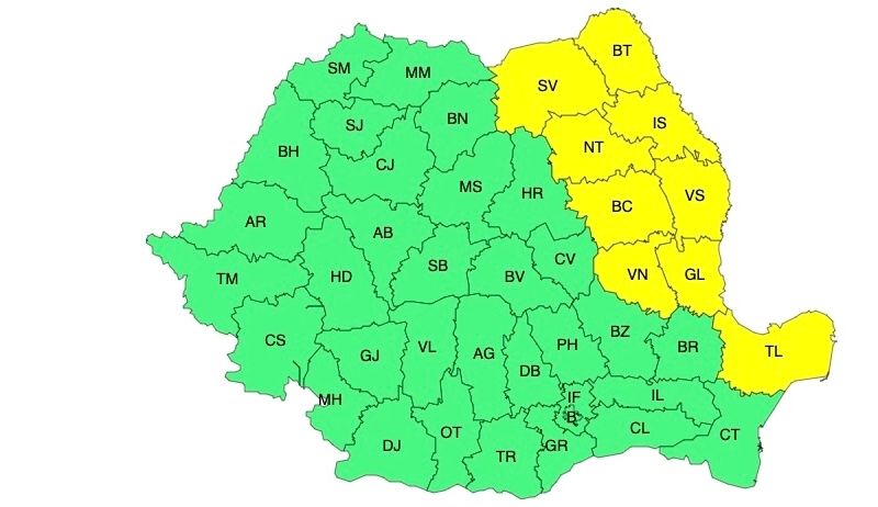 Administrația Națională de Meteorologie a emis o atenționare meteo cod galben de ploi în Moldova și nordul Dobrogei, valabilă pentru 19 septembrie, între orele 03:00 și 18:00.