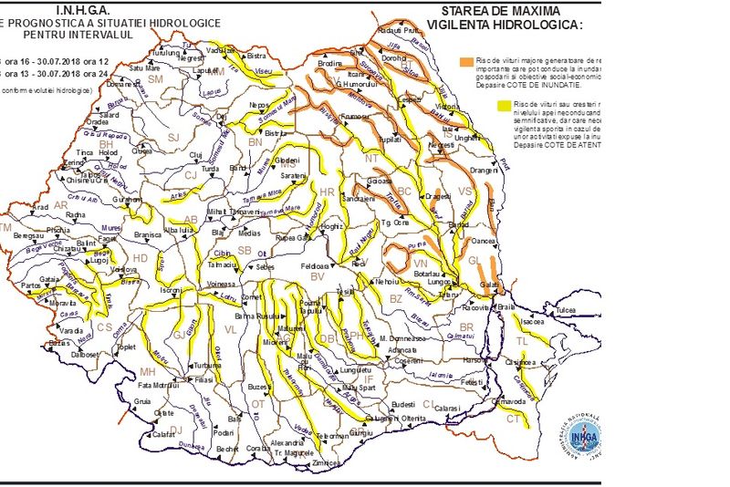 Hidrologii au emis două coduri de creștere a debitelor valabile și pentru râurile din județul Bacău. Codul galben și cel portocaliu sunt valabile până pe 30 iulie, ora 24 și preconizează scurgeri importante pe versanţi, torenţi şi pâraie, viituri rapide pe râurile mici cu posibile efecte de inundaţii locale şi creşteri de debite şi niveluri pe unele râuri din bazinele hidrografice , cu posibile depăşiri ale cotelor de apărare. Fenomenele se pot produce cu probabilitate şi intensitate mai mare în intervalul 29.07.2018 ora 18:00 – 30.07.2018 ora 10:00 pe unele râuri din judeţele: Suceava, Botoşani, Neamţ, Bacӑu şi Vrancea.