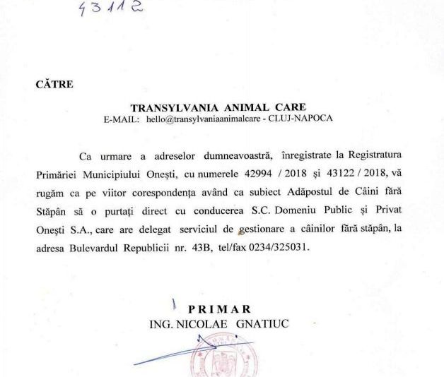 Transylvania Animal Care (TAC), o organizaţie neguvernamentală din Cluj Napoca, a lansat pe Facebook un protest la adresa Primăriei Oneşti, privind modul în care sunt trataţi câinii în adăpostul dedicat lor din oraşul menţionat. Iată comunicatul acestui ONG: