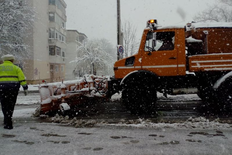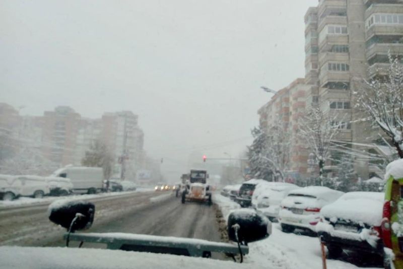 Circulația în Bacău, paralizată de ninsoare