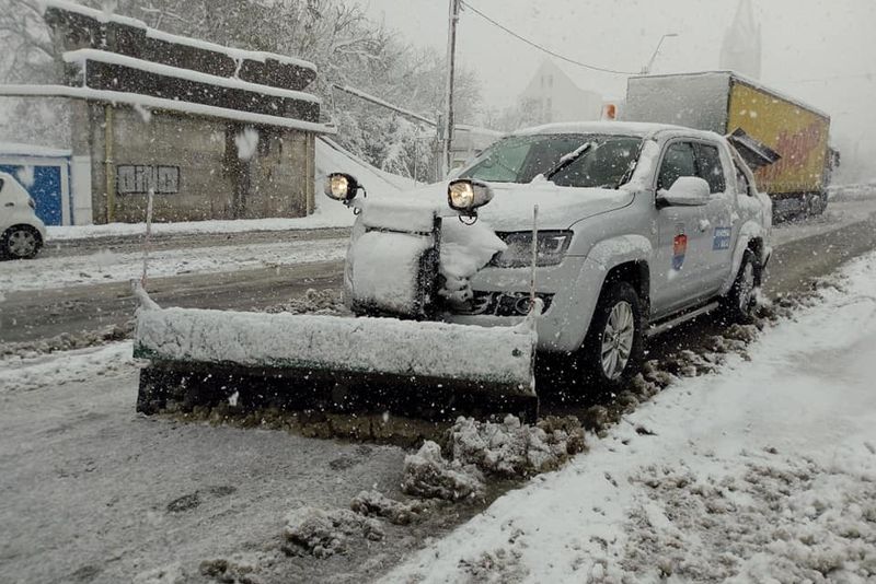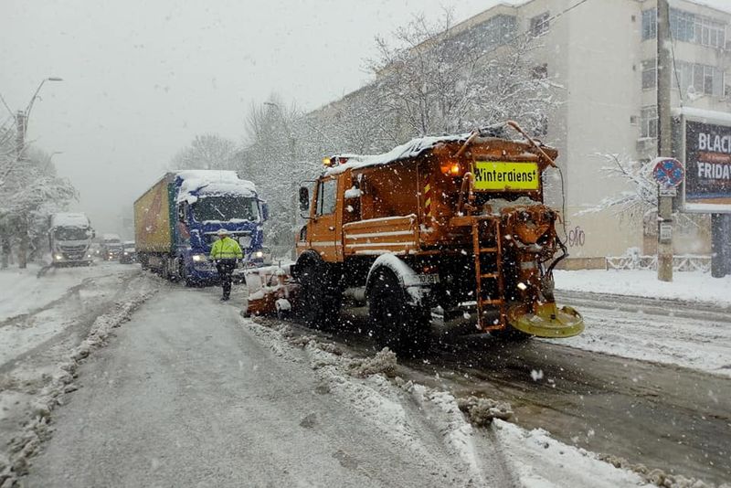 Circulația în municipiul Bacău a fost grav afectată de căderile de zăpadă din ultimele ore. De darta aceasta, se pare că nu autoritățile au fost luate prin surprindere, ci mulți șoferi care nu au apucat să treacă la anvelope de iarnă. Din această cauză, mai ales mașinile de mare tonaj au blocat intrările în oraș, dar și multe artere principale. Prin urmare, nici transportul public nu a mai funcționat corespunzător, iar găsirea unui taxi a fost o mare aventură. ”Din cauza vehiculelor de mare tonaj (tiruri, camioane, etc.) neechipate pentru condițiile de iarnă, pe mai multe intrări/ ieșiri în/din oraș circulația este puternic îngreunată. Efective ale Poliției Locale, Poliției Rutiere precum și lucrători ai Primăriei intervin pentru deblocarea traficului”, a explicat primarul Cosmin Necula.Potrivit unei informări a Primăriei Bacău, se intervine, prin Direcția Salubrizare, Agrement, Parcuri, pentru deszăpezirea căilor rutiere din municipiul Bacău și îndepărtarea zăpezii de pe trotuare. Se acționează pe străzile principale din Bacău, cu 3 autospeciale cu lamă, 4 utilajecu plug, 2 autocisterne de împrăștiat clorură de calciu, un buldoexcavator, urmând ca pe parcursul zilei să fie suplimentat numărul utilajelor de deszăpezire. De asemenea, 110 lucrători și utilaje (12 sărărițe pentru împrăștiat antiderapant, un utilaj pentru împrăștiat clorură și un miniîncărcator) intervin pentru curățarea trotuarelor.Sunt asigurate stocurile de antiderapant și materialele pentru deszăpezire: 50 de tone de sare, 2 tone de clorură de calciu (alte 20 de tone urmând a fi livrate în cursul zilei de luni, 19 noiembrie) și 80 tone de antiderapant.Potrivit avertizării meteorologice cod galben pentru judeţul Bacău, emisă de către Administrația Națională de Meteorologie, luni, 19 noiembrie, până la ora 22.00, va ninge în general moderat cantitativ și se va depune strat de zăpadă local mai consistent. Vor fi intervale de timp în care vântul va avea intensificări cu rafale ce vor atinge în medie 45…55 km/h. În jurul amiezii zilei de luni, ANM a transmis o nouă avertizare de ninsori în zona noastră, valabilă până marți, 21 noiembrie.