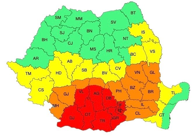 Zone afectate: județele Dolj, Olt, Teleorman, Giurgiu și sudul județelor Vâlcea, Argeș și Dâmbovița