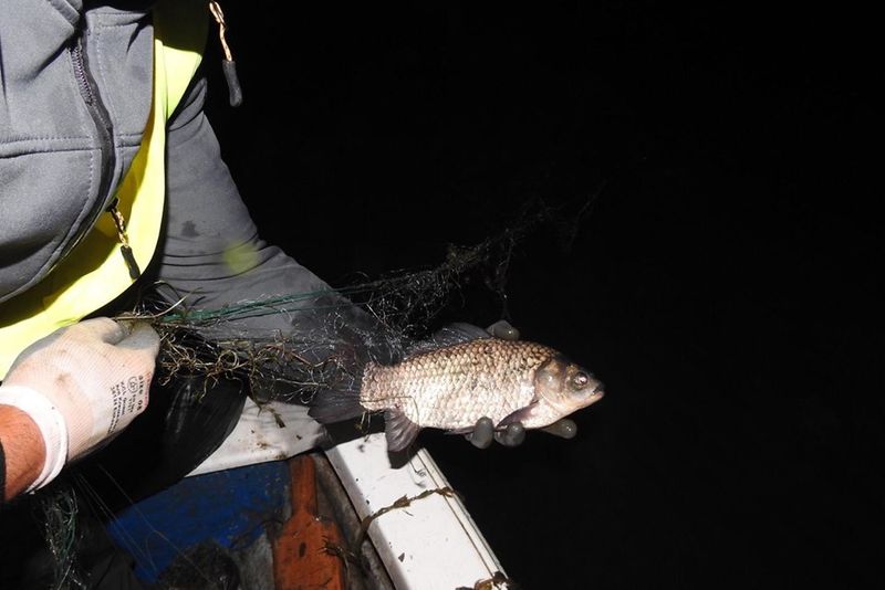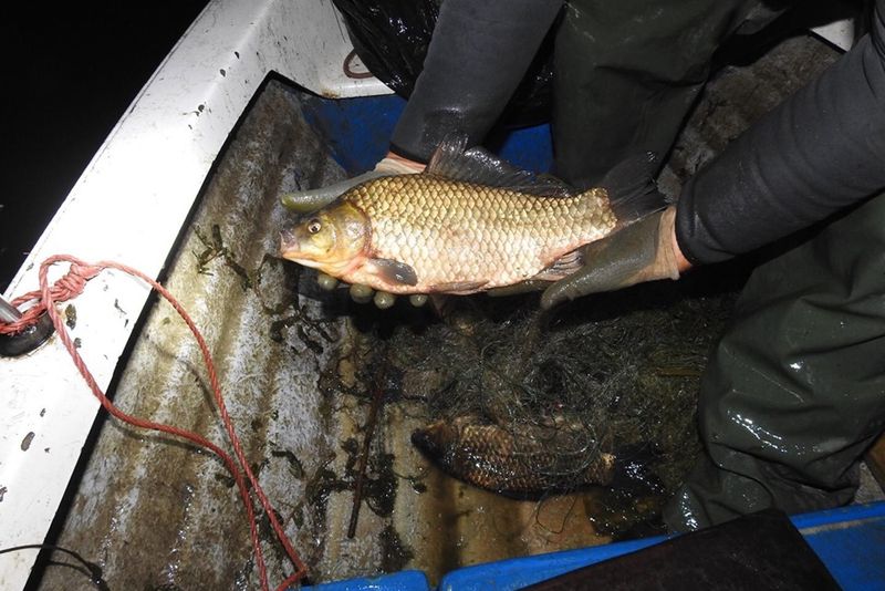 Continuă lupta cu braconajul pe lacul Galbeni. Caras de dimensiuni considerabile, prins în plasele braconierilor