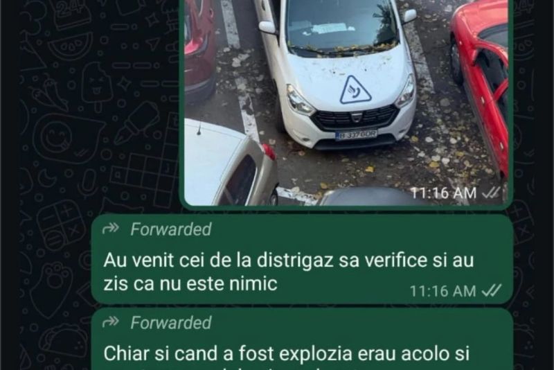 UPDATE 11:30 Pe o platformă de comunicare a apărut o fotografie cu un autoturism de intervenție al Distrigaz și informația că echipe ale furnizorului se aflau în zonă chiar în momentul deflagrației -Realitatea Plus.