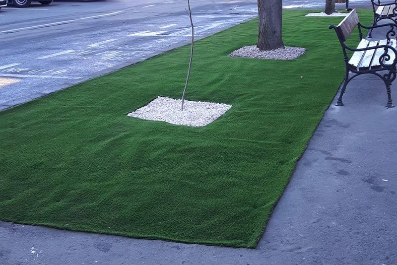 În municipiul Bacău, Direcția Spații Verzi a decis sa pună pe un spațiu verde o bucată de gazon artificial, spre mirarea și dezamăgirea cetățenilor.