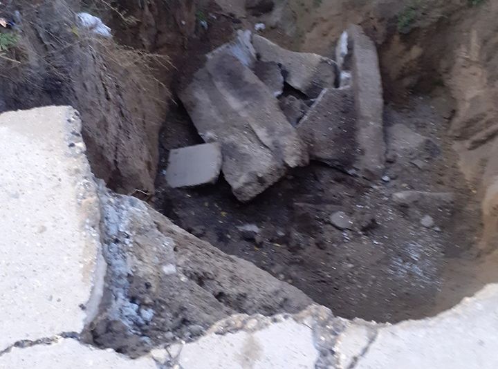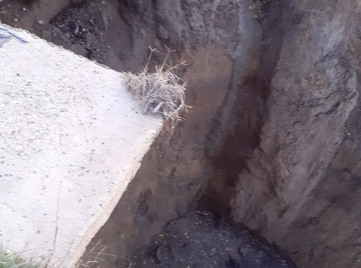 FOTO: ATENȚIE, PERICOL PUBLIC! Prăpastie pe Drumul Naţional 11 A care trece prin Podu Turcului spre Adjud şi Bârlad. Asfaltarea celor 37 de kilometri a început acum șapte luni