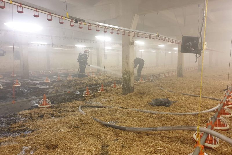 FOTO: Incendiu la ferma de păsări de la Racova. Puii crescuți pentru carne au fost salvați