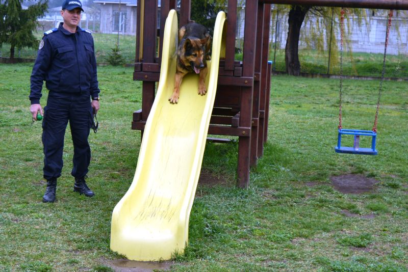 Copiii Grădiniţei „Roza Venerini” Bacău au avut parte, azi, de o zi specială, pentru că au dat nas în nas cu cele mai inteligente patrupede. Câinii Jandarmeriei Bacău i-au încântat pe cei mici cu o serie de exerciții, demonstrându-le că nu doar copiii se pot da pe tobogan, iar pentru ei munca poate fi distractivă. Rebad a fost cel mai aplaudat dintre toți, pentru că și programul lui a fost deosebit de cel al colegilor patrupezi din Jandarmerie, fiind vorba despre un dresaj recreativ. Toți jandarmii în patru labe au fost aplaudați la scenă deschisă de copii. Colegii lor în uniforme au profitat de întâlnirea avută în cadrul săptămânii „Şcoala altfel” pentru a le vorbi copiilor, pe înțelesul lor, despre violență, agresiuni și multe altele, inclusiv ce trebuie să facă și mai ales când trebuie să sune la 112.