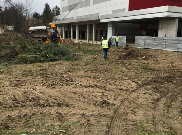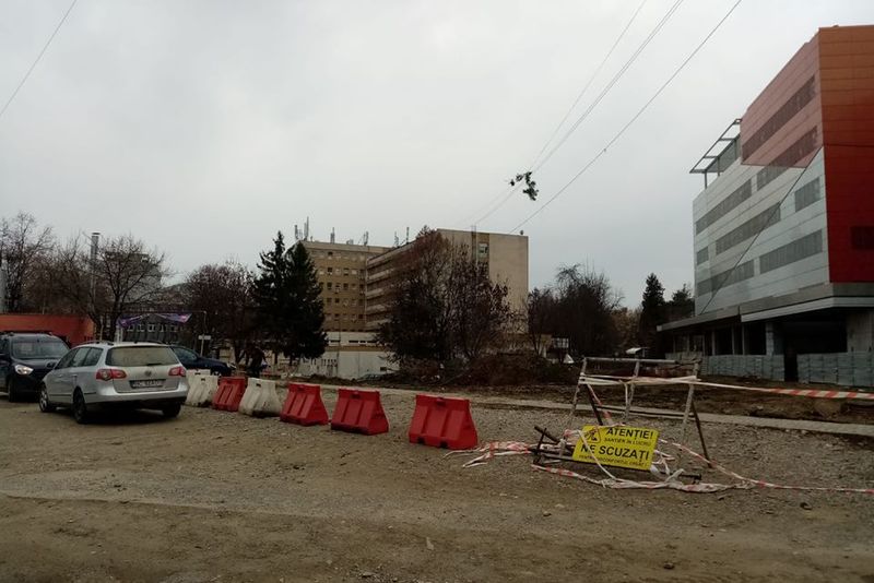 FOTO: Parcarea din incinta Spitalului Județean de Urgență Bacău iese din noroi. Au început lucrările de amenajare a celor 131 de locuri de parcare