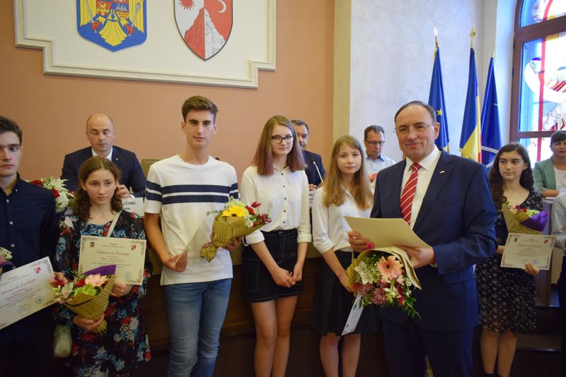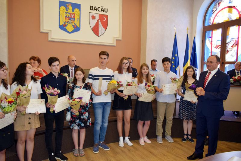 Moment festiv, astăzi, la ședința Consiliului Județean Bacău, care i-a avut în centrul atenției pe elevii de 10 ai județului. Este vorba despre elevii care au obținut media 10 la examenele naționale recent încheiate, respectiv la Bacalaureat și Evaluarea Națională, dar și rezultate deosebite la competiții internaționale. Astfel, pentru performanțele la nivel internațional, elevii au fost premiați cu 300 de euro, în timp ce mediile de 10 de la examenele naționale au fost răsplătite cu câte 200 de euro. „Rezultatele voastre și ale colegilor voștri de generație, care reprezintă rodul unei munci susținute și al unor eforturi conjugate atât din partea voastră cât și a profesorilor și a părinților, reprezintă pentru noi toți un motiv de mândrie și poziționează județul Bacău în elita învățământului românesc” le-a transmis premianților Sorin Brașoveanu, președintele Consiliului Județean Bacău.