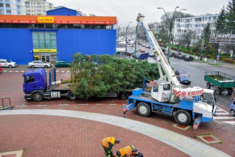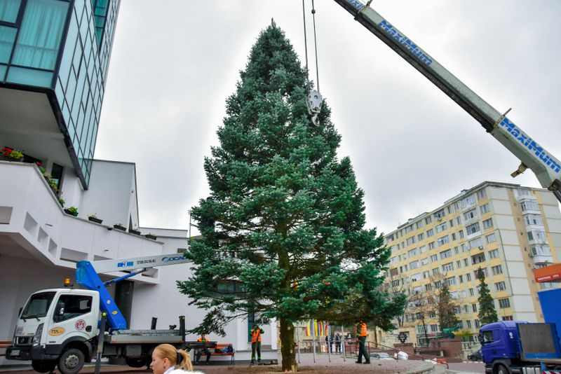 FOTO – VIDEO: Bradul de Crăciun a fost instalat deja la Onești