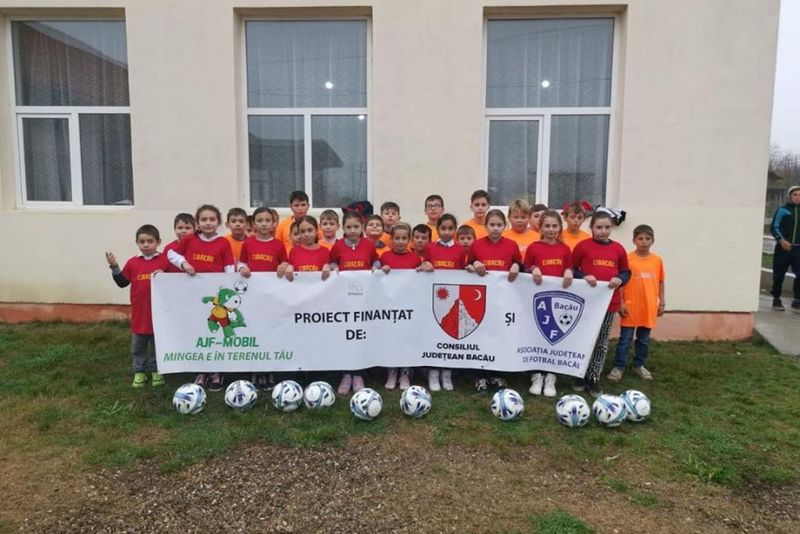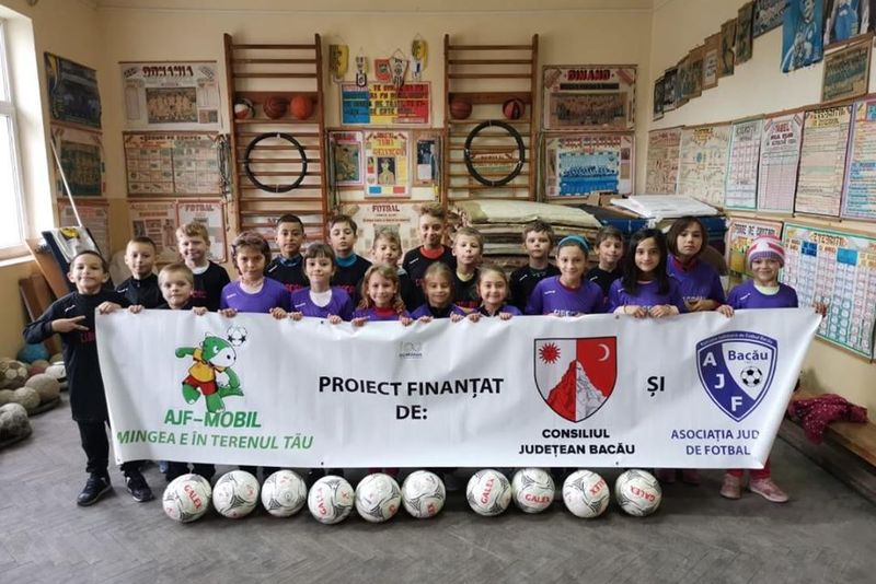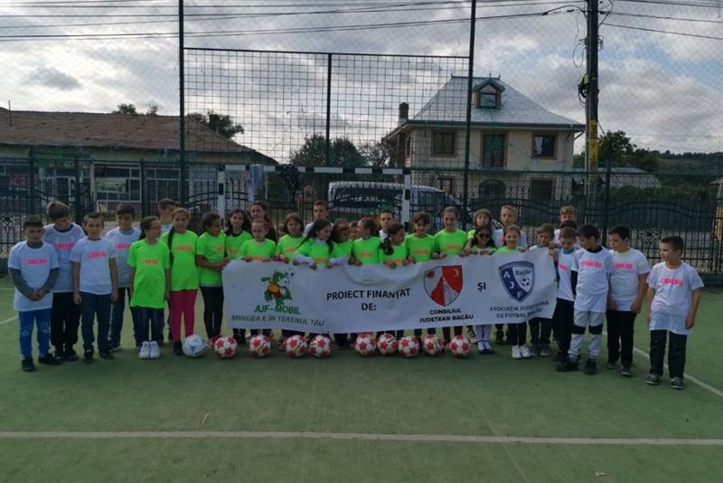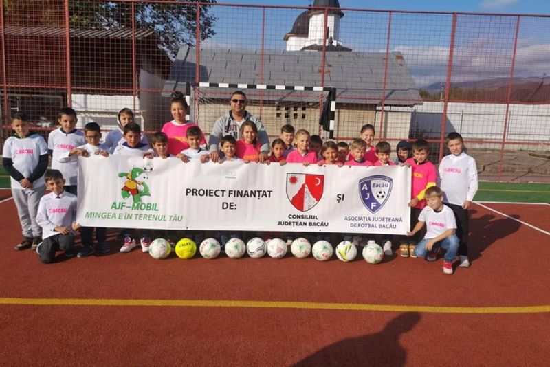 Copii care abia acum au avut ocazia să vadă cum arată o minge de fotbal adevărată, bucuria mișcării și socializarea la vârste fragede au fost obiectivele unui proiect în care au fost implicați 660 de copii din județul Bacău. Proiectul “AJF Mobil-Mingea e în terenul tău”, derulat de către Asociația Județeană de Fotbal Bacău și finanțat de către Consiliul Județean Bacău, conceput pentru copiii din clasele I-IV din mediul rural, a ajuns la ediția cu numărul trei, cu alte 22 de școli. În toate activitățile din școli, ce au cuprins jocuri distractive și exerciții, și s-au încheiat cu meciuri de fotbal între fete și băieți, cuvântul de ordine care a predominat a fost: BUCURIA!!! Și, la final, scorul a contat mai puțin pentru că nimeni nu a pierdut. Ba dimpotrivă, cu toții au câștigat, s-au bucurat, iar la final au primit mingi de fotbal și tricouri, plus stickere cu mascota proiectului, simpaticul Dino!!! “Acest proiect e unul de suflet pentru mine. Bucuria din ochii acestor copii constituie cea mai de preț realizare a noastră. Și din acest motiv vom caută să mergem cât mai des în zonele rurale din județ”, spune Cristian Sava, președintele Asociației Județene de Fotbal Bacău, inițiatorul acestui proiect. 660 de copii, fete și băieți, din 22 de comune (Ardeoani, Bogdănești, Brusturoasa, Buhoci, Corbasca, Dealu Morii, Găiceana, Ghimeș, Glăvănesti, Itești, Odobești, Oituz, Palanca, Parava, Pâncești, Pârgărești, Pârjol, Răchitoasa, Stănișesti, Tătăraști, Vultureni și Zemeș) au participat la ediția din acest an a proiectului “AJF Mobil – Mingea e în terenul tău”.