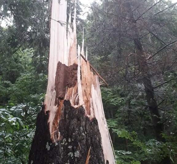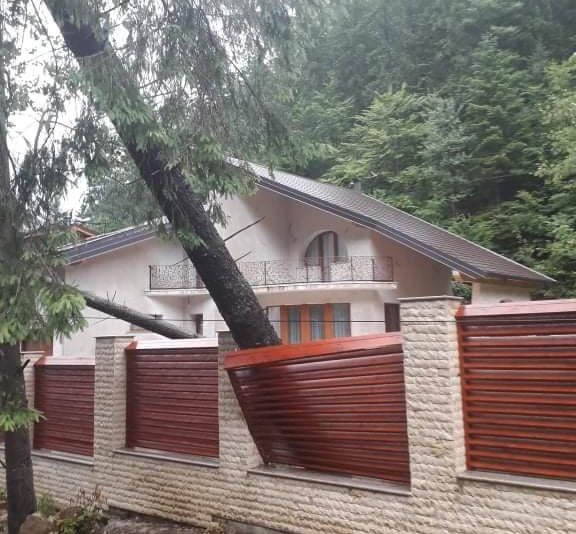 FOTO:Furtuna a măturat totul în cale. Acoperişul unui liceu din Bacău a fost luat de vânt, un copac a căzut peste firele de electricitate la Slănic şi două maşini sunt avariate