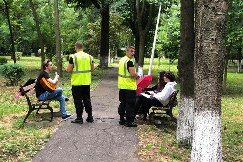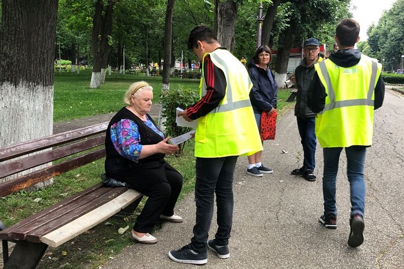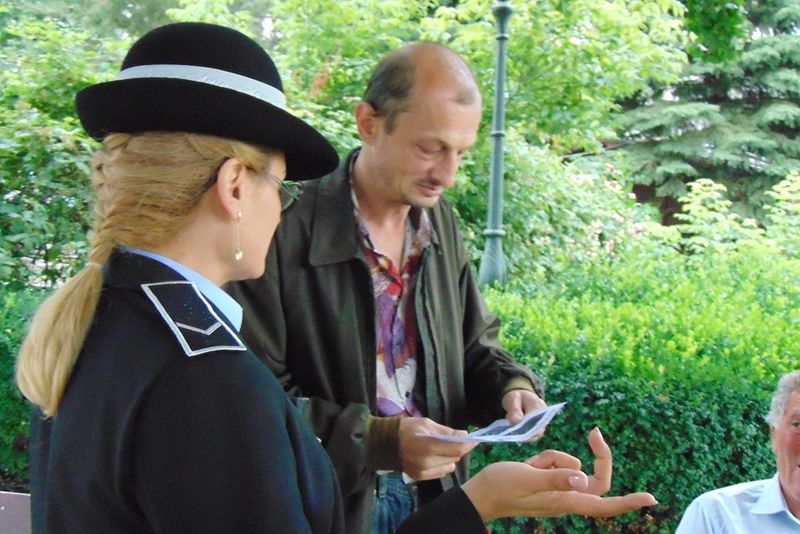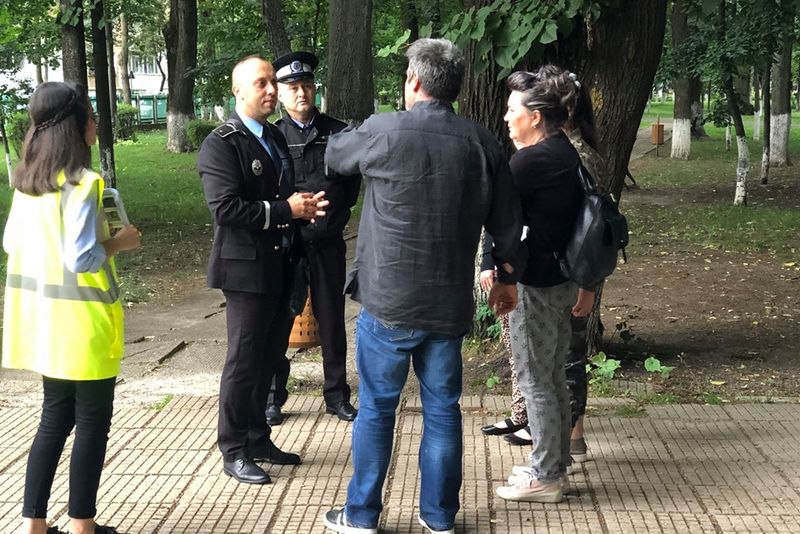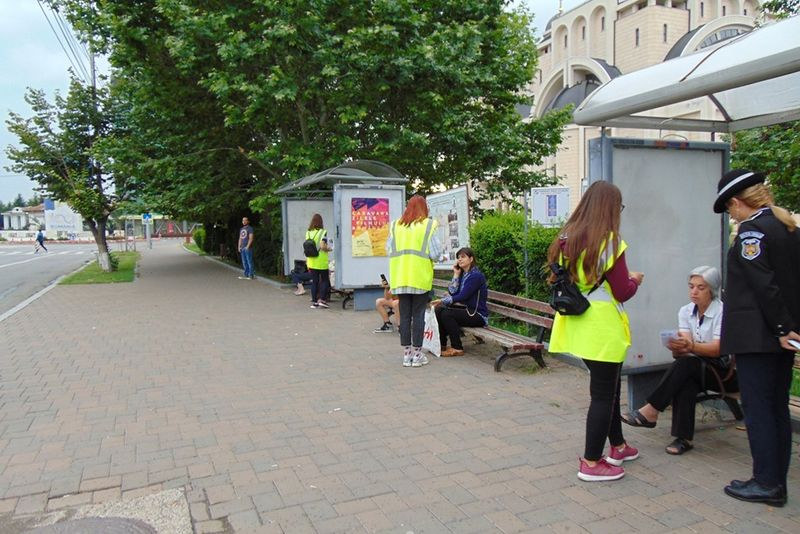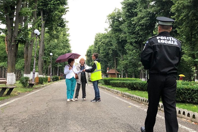 FOTO:Poliţiştii locali îi învaţă pe băcăuani cum să păstreze curăţenia în oraş. Împart flyere şi amenzi