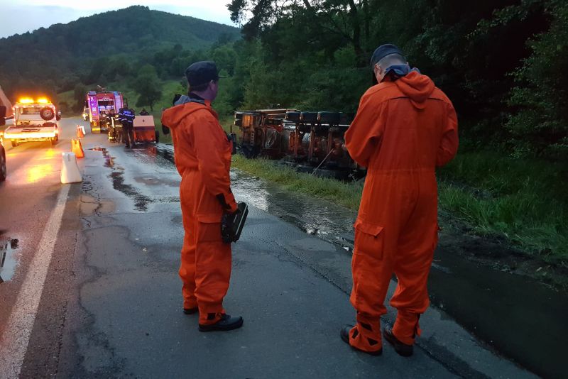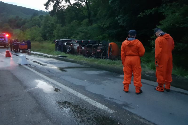 A fost alertă maximă, după ce o cisternă s-a răsturnat pe DN11, între localitățile Ferăstrău-Oituz și Hârja. Accidentul a fost anunţat în jurul orei 18.00, iar prima decizie a vizat întreruperea totală a traficului, din cauza încărcăturii, respectiv formaldehidă soluție apoasă concentrație 45%.La faţa locului a fost trimisă inclusiv autospeciala CBRN a ISU Bacău, pentru a detecta eventualele scurgeri.După circa 7 ore a început operaţiunea de transvazare a soluţiei într-o altă cisternă ajunsă la faţa locului. Această operaţiune a durat circa o oră şi jumătate, după care traficul rutier a fost reluat. După încheierea misiunii, pompierii nu au plecat de la faţa locului, ci au rămas să supravegheze zona.Riscul a fost unul major. Formaldehida este o substanţă extrem de toxică, dar şi uşor inflamabilă, iar o explozie s-ar fi putut produce în orice moment.