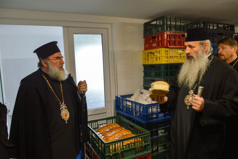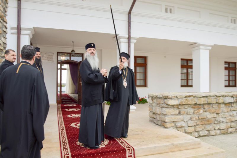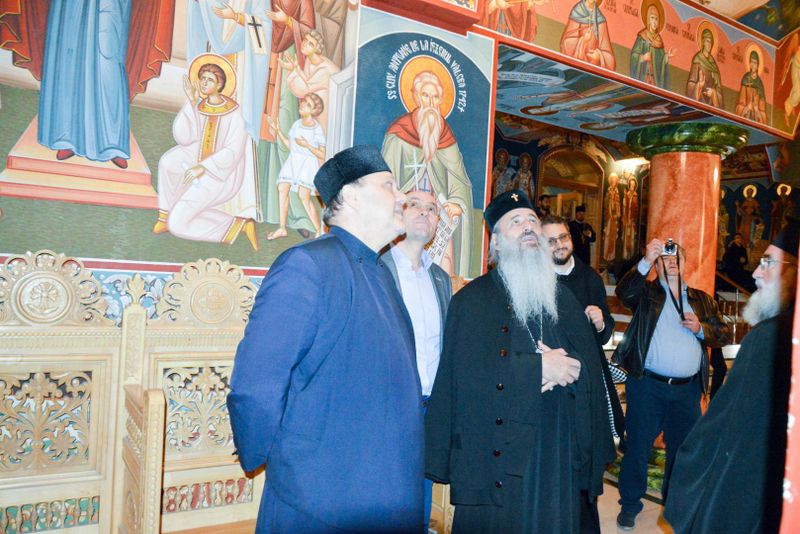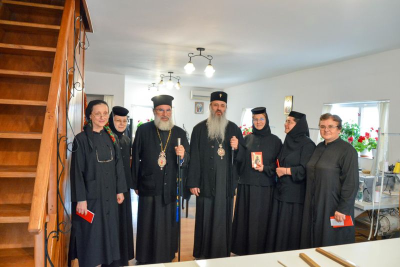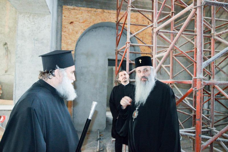 IPS Părinte Teofan, Arhiepiscopul Iașilor și Mitropolitul Moldovei și Bucovinei, s-a aflat ieri în Bacău, unde a vizitat Catedrala „Înălțarea Domnului” și „Casa Sterian”. Însoțit de IPS Părinte Ioachim, Arhiepiscopul Romanului și Bacăului, de Sorin Brașoveanu, președintele Consiliului Județean Bacău, de părintele Pimen Costea, vicar administrativ, înaltul ierarh a coborât la subsolul impunătorului lăcaș de cult unde s-a închinat în Sfântul Altar și apoi s-a recules la mormântul Episcopului Ioachim Mareș. Între lucrările majore ce sunt în derulare în prezent se află și aplicarea picturii în tehnica mozaic, realizate la interiorul mărețului locaș de cult. Înaltpreasfințitul Părinte Mitropolit nu a ocolit nici șantierul de la „Casa Sterian” din Bacău, unde au putut fi admirate lucrările de renovare aflate în desfășurare, menite să scoată la suprafață frumusețea de odinioară a acestei case model, pentru urbea băcăuană. Aici părintele Pimen Costea, vicar eparhial, a prezentat stadiul actual al lucrărilor de reabilitare. „La finalul vizitei, Părintele Mitropolit Teofan l-a felicitat pe IPS Părinte Arhiepiscop Ioachim pentru toată activitatea și realizările din ultimii ani alături de colaboratorii săi de la Centrul Eparhial și de toți preoții slujitori din Arhiepiscopia Romanului și Bacăului”, spune pr. Daniel-Ionel Marari. Tot în cursul zilei de ieri, Părintele Mitropolit Teofan a vizitat și Centrul Eparhial de la Roman. Au fost vizitate Palatul Administrativ aflat în renovare capitală, Centrul cultural-administrativ „Sf. Ierarh Dosoftei”, de curând dat în folosință, Fabrica de lumânări „Sf. Fotini”, Atelierul de croitorie veşminte preoţeşti „Cămașa lui Hristos”, Brutăria „Betleem” și depozitul de colportaj „Sf. Dionisie Exiguul”. Tot personalul angajat a primit iconițe și cărți de rugăciune de la părintele Mitropolit Teofan.