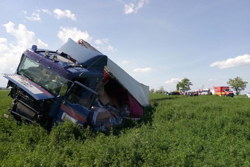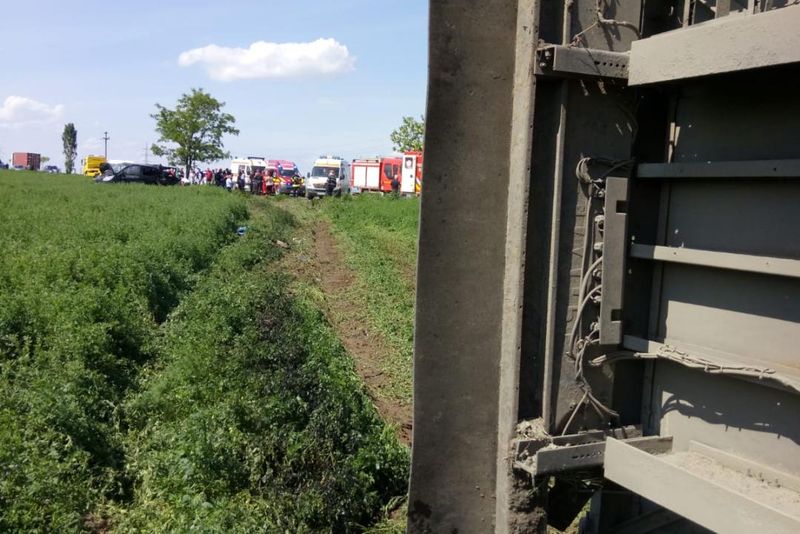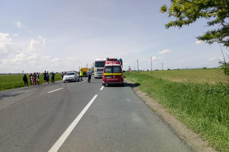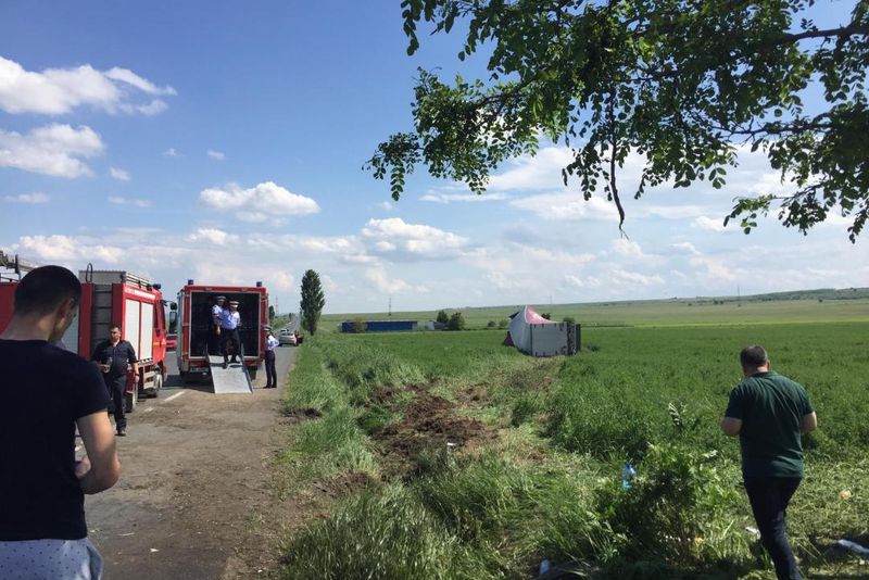 GALERIE FOTO: O familie spulberată de un TIR la Sascut. Oamenii se întorceau de la o nuntă și au oprit pe DN 2 cu mașina pe avarie
