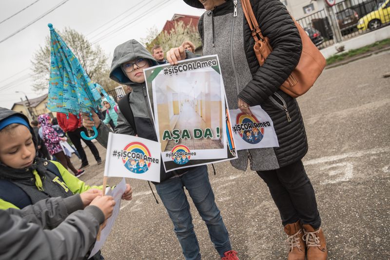 GALERIE FOTO: Protest inedit #șîȘCOALAmea la școala “Mihai Drăgan”. Părinții vor să-și știe copiii în siguranță la școală