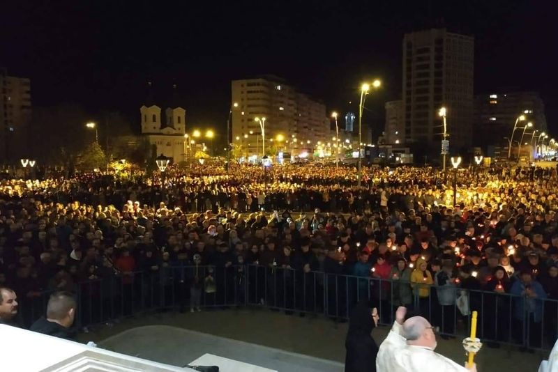 Mii de băcăuani s-au putut bucura de Lumina Sfintei Învieri care a fost oferită în acest an de către Părintele Ioachim, Arhiepiscopul Romanului și Bacăului. La primele minute din Ziua Învierii, Înaltpreasfințitul Părinte Ioachim s-a aflat la catedrala „Înălțarea Domnului” din centrul orașului Bacău, unde a participat la slujba Utreniei Învierii, după care a rostit cuvântul Său pastoral, special pregătit pentru această zi unică. Ierarhul a vorbit celor câtorva mii de băcăuani adunați la slujbă despre Marele Praznic al Învierii:„Hristos înviat este Paștele, Sărbătoarea Sărbătorilor, punctul culminant al anului liturgic. În această zi, Domnul nostru Iisus Hristos și-a împlinit parcursul istoric, călătoria Sa pe pământ. Din acest moment viața Sa a dobândit caracteristici noi, care nu mai seamănă cu ceea ce știm noi că înseamnă viața umană... Atunci când întreaga Biserică intonează troparul Învierii: Hristos a înviat din morți, cu moartea pe moarte călcând și celor din morminte viață dăruindu-le, trebuie să înțelegem și să simțim că Hristos, prin învierea Lui, pune bazele unei noi creații (palingeneză). Însă, noua stare nu seamănă cu nimic din ceea ce oamenii au experimentat până acum, căci nimeni nu o poate verifica în sens științific. Nu există nici o dovadă experimentală a Învierii lui Hristos. De aceea Învierea lui Iisus nu se compară cu nicio altă minune. Ea este revelarea unei stări cu totul noi pentru om, prin care El scapă oricăror condiționări materiale, oricăror amenințări cu boala sau moartea. Este vorba despre un eveniment care are același caracter de noutate pe care l-a avut creația inițială a lumii”. În cuvântul Său, Părintele Arhipăstor a amintit despre Anul Omagial al satului românesc, despre păstrarea identității naționale și a spiritualității ortodoxe.„Pentru ortodocșii români, acest an are o semnificație aparte, deoarece, prin hotărârea Sfântului Sinod 2019 a fost proclamat ca An omagial al satului românesc, devenind astfel un prilej de reflecție, conservare și promovare a ceea ce a dat sens și unicitate spiritualității autohtone. Este un moment prielnic pentru a ne arăta recunoștința față de cei care au dat identitate satului românesc, au menținut, promovat și apărat neamul și credința noastră strămoşească. Dincolo de marile transformări social-politice prin care a trecut România postdecembristă, miezul ființării ei a rămas același, la acest lucru un rol fundamental avându-l Ortodoxia ca mod de viață. În centrul acestui fel de a înțelege și de a trăi realitatea cotidiană se regăsește sărbătoarea pe care o purtăm astăzi cu atâta bucurie în sufletele noastre. Învierea Domnului să fie pentru noi, generația de astăzi, a românilor de pretutindeni, imboldul de a ne trăi existența ca pe un dar al lui Dumnezeu și de a ne păstra identitatea spirituală, culturală și națională oriunde ne-am afla pe meridianele acestui pământ, care este casa noastră și locul prezenței lui Dumnezeu”.