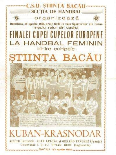 Din lotul echipei care a câștigat în urmă cu trei decenii Cupa Cupelor au făcut parte: Ioana Vasîlca, Eugenia Jitaru, Marlena Petrea, Eva Darvaş, Adriana Popa, Filofteia Danilof, Georgeta Voinea Cervenciuc, Gabriela Antoneanu, Lidia Butnăraşu, Elena Ciubotaru, Ionela Turluianu, Emilia Luca, Laurica Lunca, Angela Brânduşoiu, Marinela Matei Petrea. Traseul Științei în sezonul europen 1988/189 a fost unul impresionant:Ştiinţa Bacău – Izmir Belediyese 38-17 şi 38-18; Ştiinţa Bacău – Empor Rostok 24-22 şi 19-20; calificare milimetrică la un gol, obţinută în meciul retur de la Rostok; Știinţa Bacău – Vasas Budapesta 32-20 şi 31-21; Ştiinţa Bacău – ŢSKA Sept. Zname Sofia 32-20 şi 22-22; ŞTIINȚA BACĂU – KUBAN KRASNODAR 22-19 şi 22-22, FINALA. Antrenori Mihai Pintea şi Costel Petrea, medic Dan Chelariu.