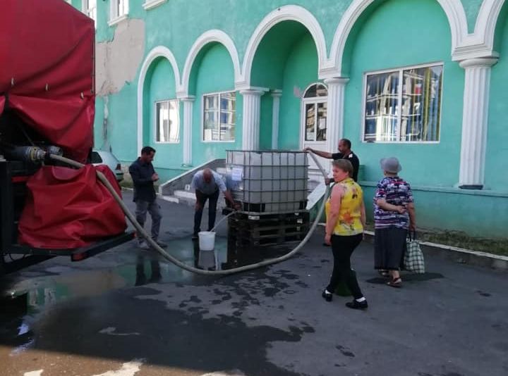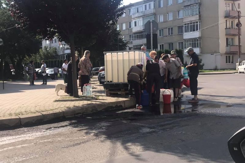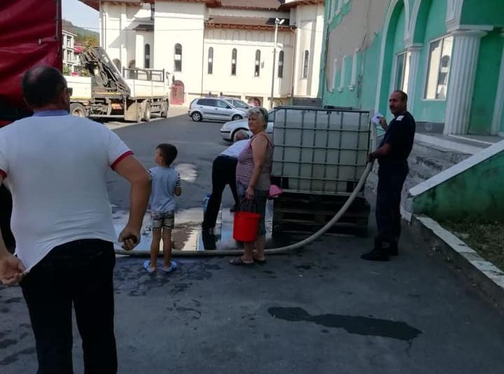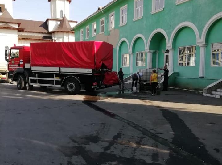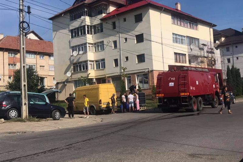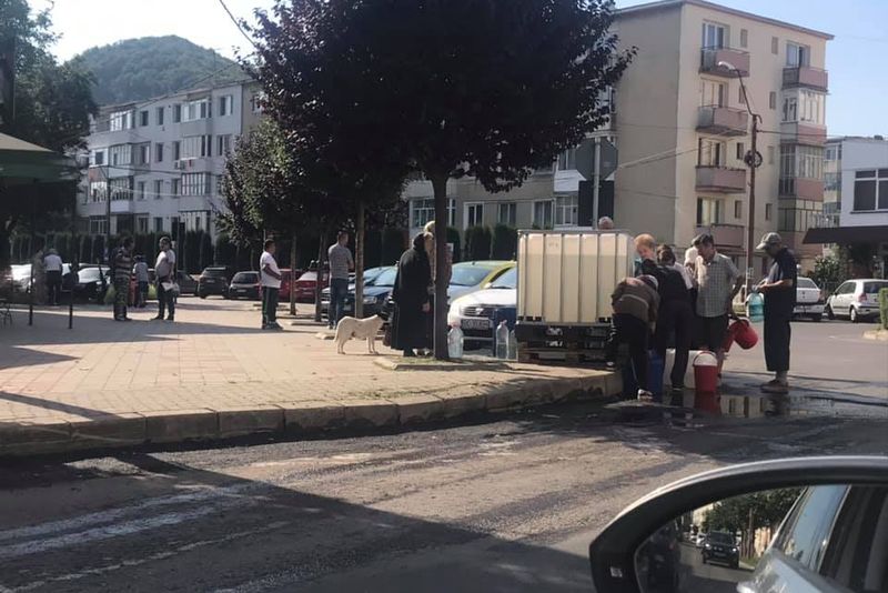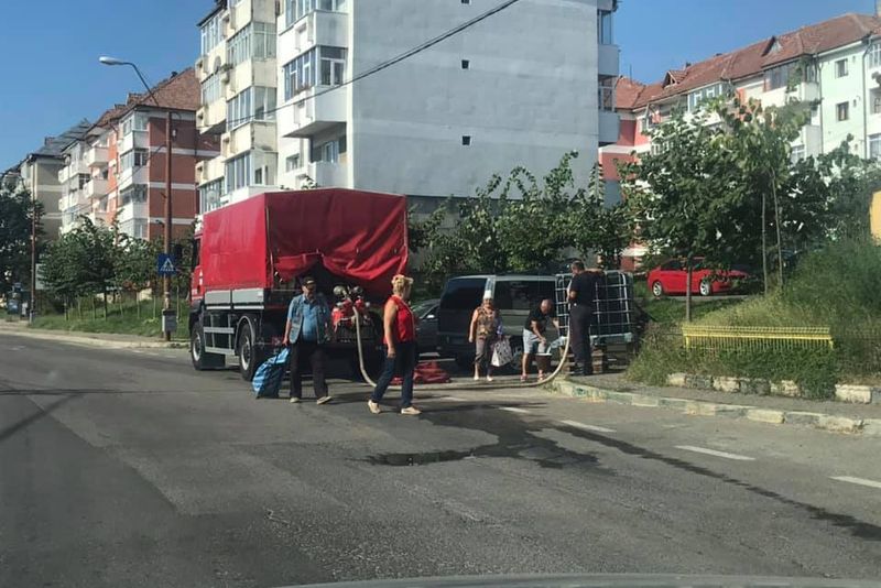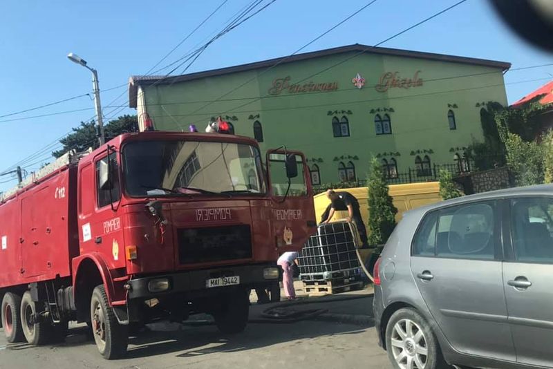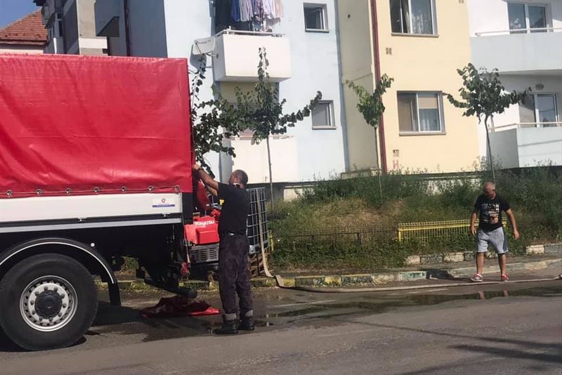 GALERIE FOTO:Apă pentru moineștenii afectați de avariile repetate. Pompierii și municipaliatea au amplasat câte un rezervor de 1.000 de litri de apă în șapte locații din Moinești