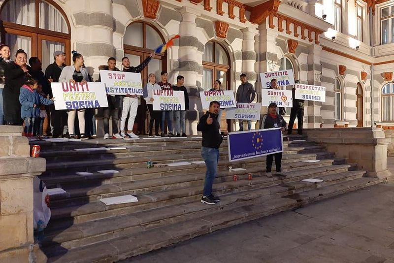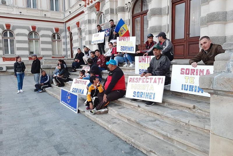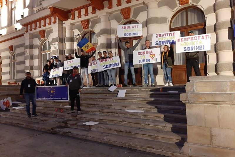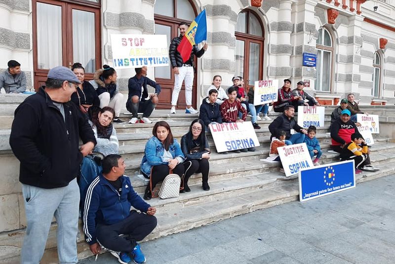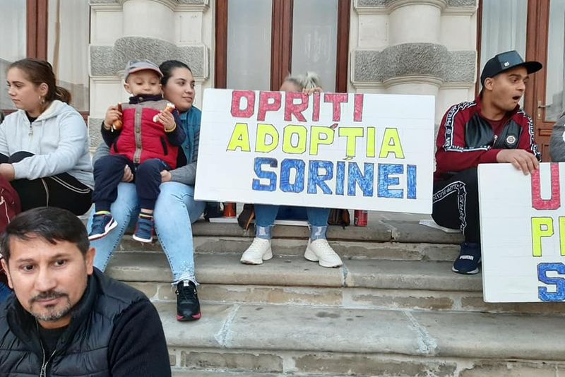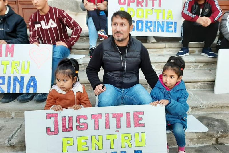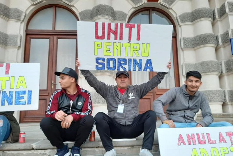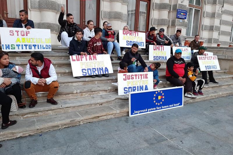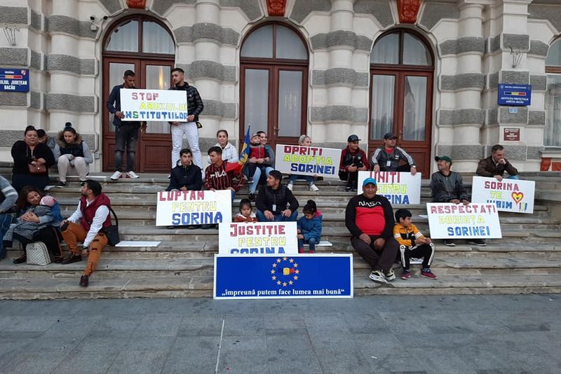 „Împreună pentru o lume mai bună”- acesta este sloganul sub care mai mulți băcăuani, adulți și copii, s-au adunat aseară pe treptele Prefecturii Bacău și au cerut anularea adopției internaționale a Sorinei, fata de opt ani luată de lângă familia în care a crescut. „Opriți adopția Sorinei!”, „Luptăm pentru Sorina!”, „Stop abuzurilor instituțiilor”, „Anulați adopția Sorinei”, „Uniți pentru Sorina”,„Sorina, te iubim!”- sunt doar câteva dintre sloganurile înscrise pe pancartele manifestanților. Întreaga acțiune a fost organizată de Vasile Dănciulescu, președintele Alianței pentru Unitatea Rromilor (AUR) Bacău, asociație ce își propune monitorizarea problemelor cu care se confruntă minoritatea rromă în plan intern și internațional, precum și promovarea și apărarea drepturilor cetățenilor de etnie rromă. Protestatarii băcăuani și-au arătat indignarea față de modul în care justiția din România a analizat cazul Sorinei, minora de opt ani din Baia de Aramă care la sfârșitul lunii iunie a fost luată cu mascații din casa familiei Șărămăt, în sânul căreia a crescut, pentru a fi încredințată spre adopție unei familii româno-americane. Verdictul în acest caz va fi dat mâine (luni, 21 octombrie, n.r), când se vor judeca ambele procese în aceeași ședință: suspendarea adopției și anularea adopției. La ultimul proces de suspendare a adopției, avocatul familiei Șărămăt a cerut recuzarea completului de judecată. S-a stabilit, astfel, judecarea acestui proces în aceeași ședință cu cel de luni pentru anularea adopției.