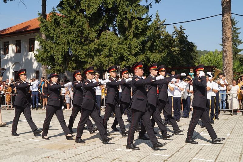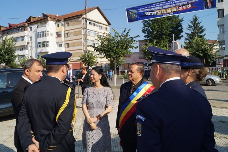 Atmosferă de sărbătoare ieri în centrul stațiunii Târgu Ocna, unde primii absolvenți de poliție penitenciară din România au rostit jurământul de credință, în cadrul Festivității de absolvire a promoției 2019- ”Nicolae Bălcescu”. Alături de cei 260 de elevi ai Școlii în acest moment solemn s-a aflat ministrul Justiției, Ana Birchall, comisarul șef de poliție penitenciară Cristian Pleșa – director general al Administrației Naționale a Penitenciarelor din România, comisarul șef de justiție Vladimir Cojocaru – director adjunct al Administrației Naționale a Penitenciarelor din Republica Moldova, specialiști din cadrul Administrației Naționale a Penitenciarelor din România, directori de penitenciare din cadrul Administrației Naționale a Penitenciarelor din România, specialiști din cadrul Administrației Naționale a Penitenciarelor din Republica Moldova, reprezentanți ai instituțiilor de învățământ liceal și universitar, reprezentanți ai instituțiilor din sistemul de apărare, ordine publică și siguranță națională, reprezentanți ai autorităților publice locale și reprezentanți ai organizațiilor sindicale. Directorul Şcolii Naţionale de Pregătire a Agenţilor de Penitenciare i-a îndemnat pe elevi să aibă mereu în vedere ca uniforma pe care o poartă, drapelul care va flutura mereu deasupra lor, imnul pe care îl vor intona de atâtea ori, jurământul pe care l-au rostit, să rămână simboluri sacre care să îi inspire și să le dea încredere, care să le hrănească zi de zi dragostea față de patrie, mândria de a fi în slujba justiției și puterea de a schimba în bine lumea din jurul lor. În mesajul său, ministrul Ana Birchal i-a îndemnat pe elevi să fie mândri pentru faptul că sunt prima promoție de agenți de poliție penitenciară, să fie și să rămână oameni, să fie un sprijin în schimbarea în bine a instituției, să contribuie la sporirea încrederii societății în instituția pe care o reprezintă și să nu uite că adevărata valoare a oamenilor e dată de mintea și sufletul fiecăruia. Festivitățile au continuat la sediul Școlii, unde a fost dezvelită placa de onoare și a fost premiat șeful de promoție.