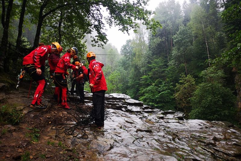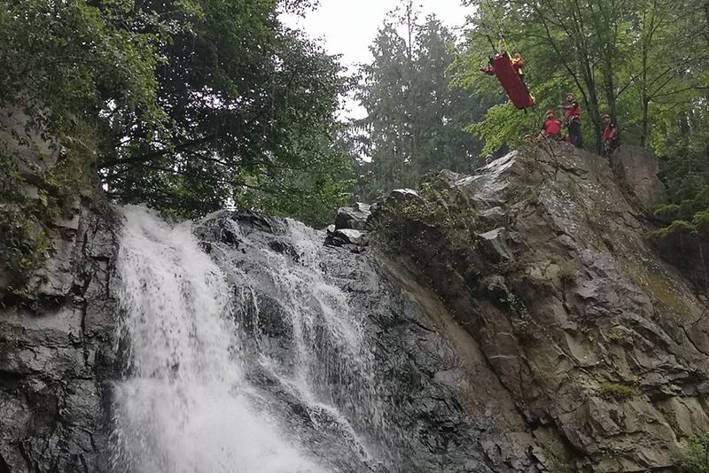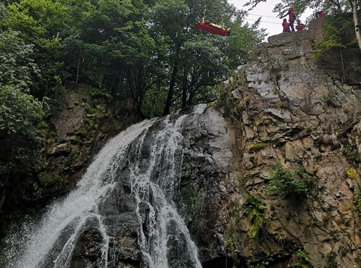 GALERIE FOTO:Salvare la înălțime. Exercițiu de salvare la Cascada Buciaș cu salvamontiști din trei județe