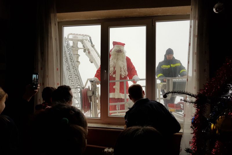 Bucurie mare printre copiii cadrelor de la Inspectoratul pentru Situații de Urgență Bacău, care au venit cu părinții la serviciu ca să-l întâlnească pe Moș Crăciun. Încărcat cu daruri, bătrânelul a urcat cu autoscara până la etajul doi al clădirii și a intrat pe fereastră în sala în care cei mici îl așteptau deja. Toți au primit cadouri, chiar dacă au spus sau nu poezii, și au promis că vor fi mai cuminți în anul care vine.