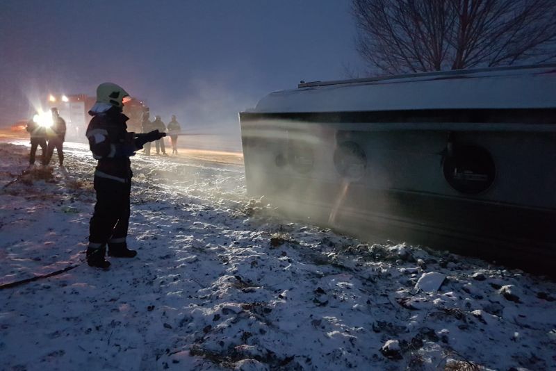 Pompierii băcăuani au intervenit în acestă dimineață, pe DN 2, în satul Dumbrava, comuna Itești, după ce o cisternă încărcată cu benzină și motorină s-a răsturnat în afara carosabilului. Salvatorii sosiți la fața locului cu două autospeciale cu apă și spumă și o ambulanță SMURD au constatat că din autocisternă sunt scurgeri de combustibil și au asigurat măsurile de prevenire și stingere a incendiilor. Pentru coordonarea acțiunilor de intervenție la fața locului s-a deplasat și grupa operativă a inspectoratului. În urma accidentului, șoferul a fost rănit ușor, a primit îngrijiri medicale de la pompierii paramedici, însă a refuzat transportul la spital.
