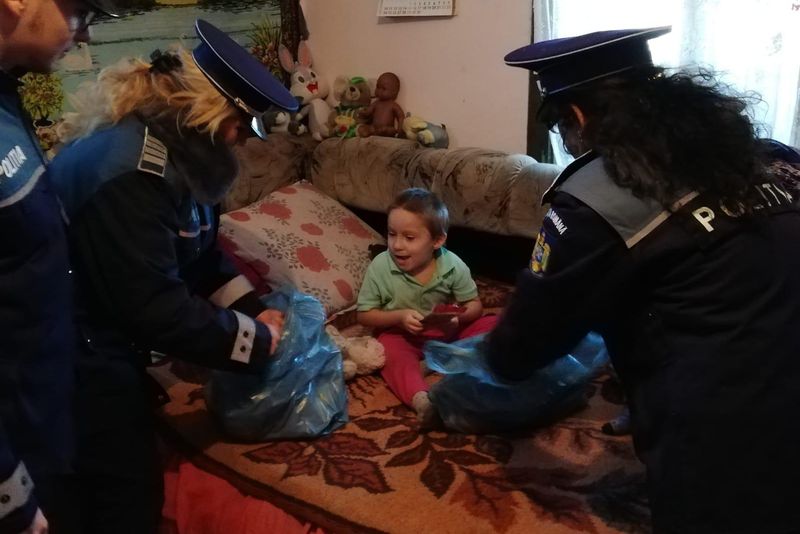 Polițiștii din stațiunea Slănic Moldova s-au mobilizat pentru a face fericiți, măcar acum în prag de sărbători, zeci de copii din localitate. Este vorba, mai exact despre 83 de minori, cu vârste cuprinse între 2 și 13 ani, din familii nevoiașe, care au primit obiecte vestimentare, jucării şi dulciuri. Și ei, la rândul lor, i-au răsplătit cu poezii, colinde și zâmbete. Campania s-a desfăşurat în cartierele Cerdac şi Cireşoaia.
