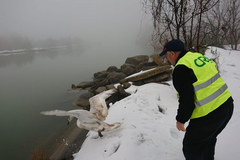 Azi-noapte, în jurul orei 2.00, polițiștii locali aflați în timpul serviciului de patrulare auto pe strada Dumbravei, din municipiul Bacău, au observat pe partea carosabilă o lebădă. Aceștia au luat-o în mașină și au anunțat imediat Centrul Regional de Ecologie Bacău, care au mers la sediul Poliției Locale a Municipiului Bacău, de unde au preluat pasărea și au eliberat-o în habitatul natural al acesteia, mai precis pe Lacul Bacău.