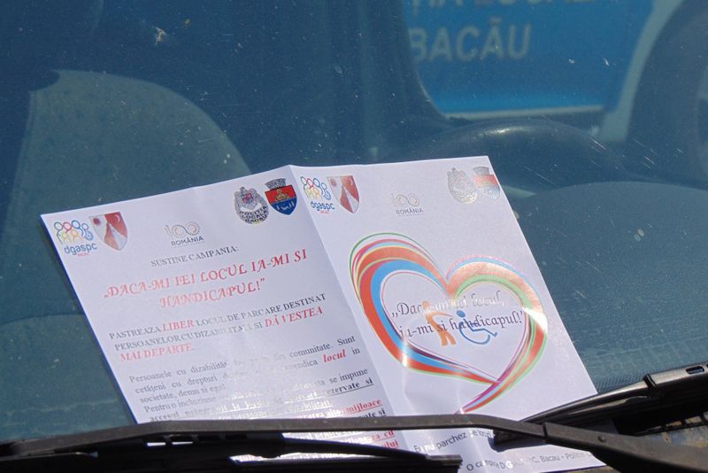 După ce în luna august au desfăşurat activităţi de informare, poliţiştii locali din Bacău au trecut acum la amenzi, în cadrul campaniei „Dacă-mi iei locul, ia-mi și handicapul!”. Împreună cu Direcția Generală de Asistență Socială și Protecția Copilului, agenţii au desfășurat zilele trecute acțiuni de identificare și sancționare a conducătorilor auto care parchează pe locurile destinate persoanelor cu dizabilități.