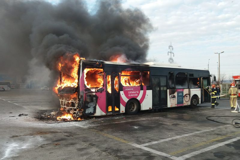Un autobuz al S.C. Transport Public S.A. a fost cuprins în această seară de flăcări. Incendiul a izbucnit din senin, în timp ce autobuzul se afla pe traseu, pe strada Chimiei. Din fericire, în momentul în care focul a cuprins mijlocul de transport, în autobuz nu se aflau călători. Șoferul a reușit să se evacueze la timp. Pompierii militari au intervenit pentru stingerea incendiului. Potrivit reprezentanților ISU Bacău, autobuzul a ars în proporție de 70%. Cel mai probabil, flăcările au pornit din cauza unui scurtcircuit electric.